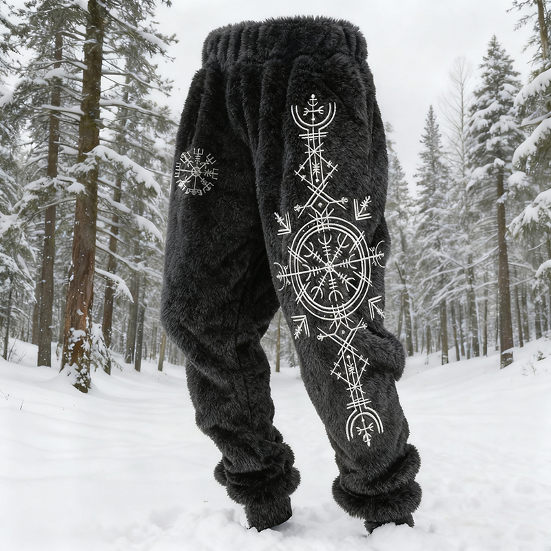 Men's Vintage Viking Totem Art Casual Flannel Pants fe62