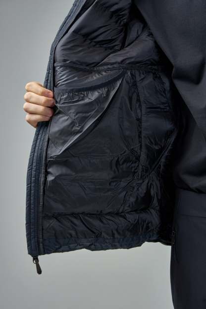 - breathable- lightweight- compressible and packable- insulated- wind resistant- zip closure- small logo embroidery