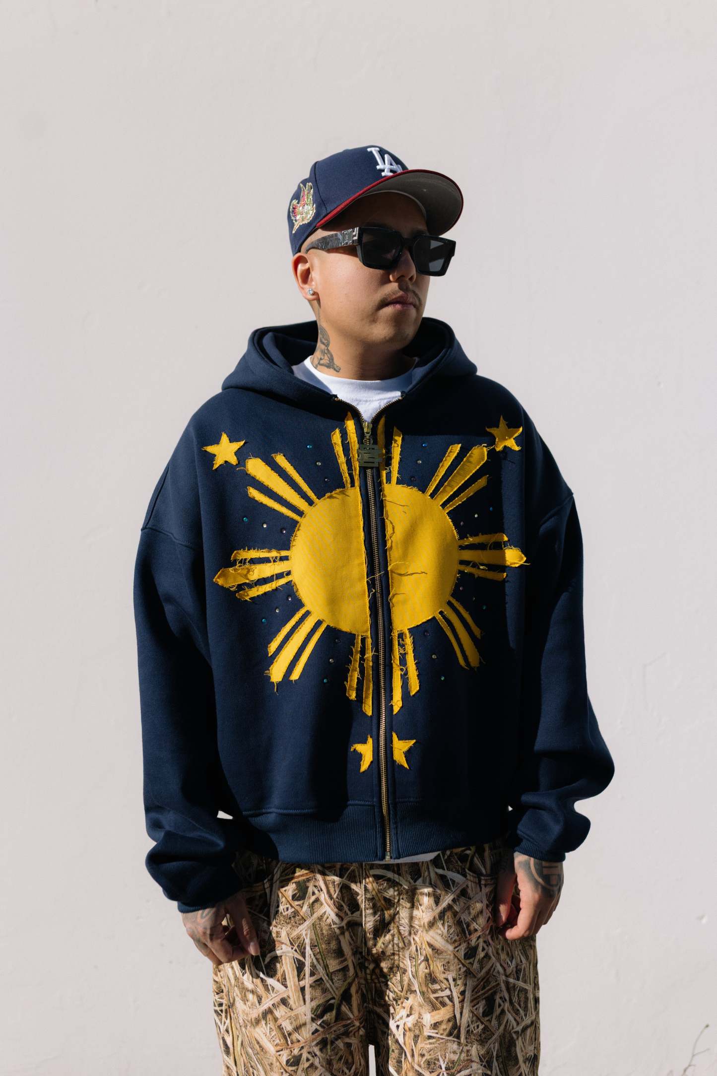 Distressed Front Embroidery applied by hand &?screenprint back hit