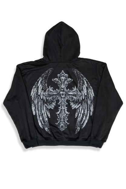 Elevate your style with this gothic hoodie featuring a striking cross graphic. The detailed print on both the front and back adds a bold, edgy touch to your look. Crafted from soft, high-quality fabric, this hoodie ensures comfort and durability.